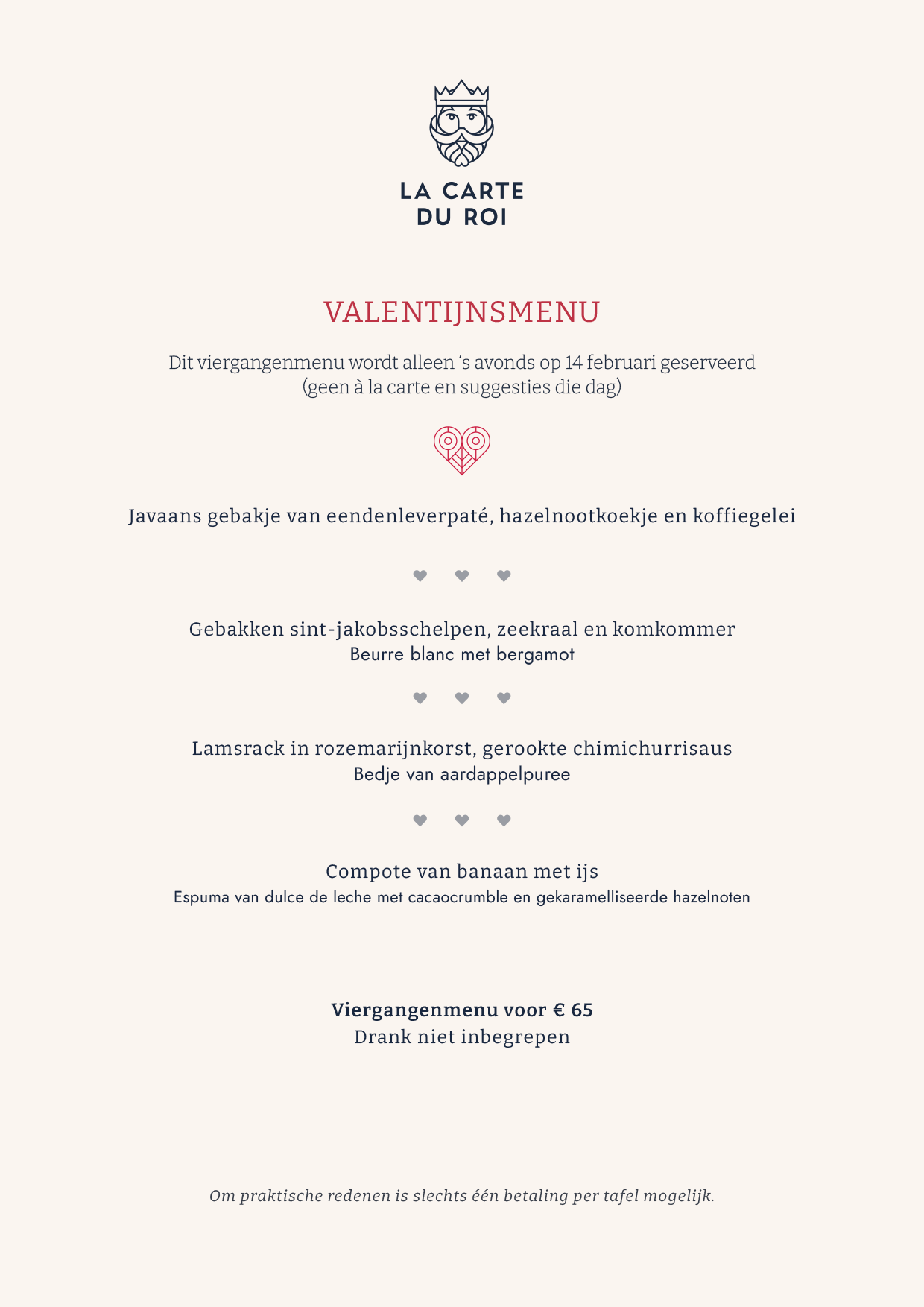 - 2 driegangenmenu’s bij ‘La Carte du Roi’ (drank niet inbegrepen)**